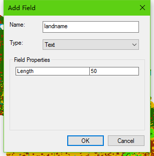 2、然后按照数字编号对应的中文名称,新建landname字段,