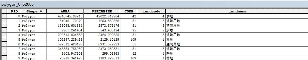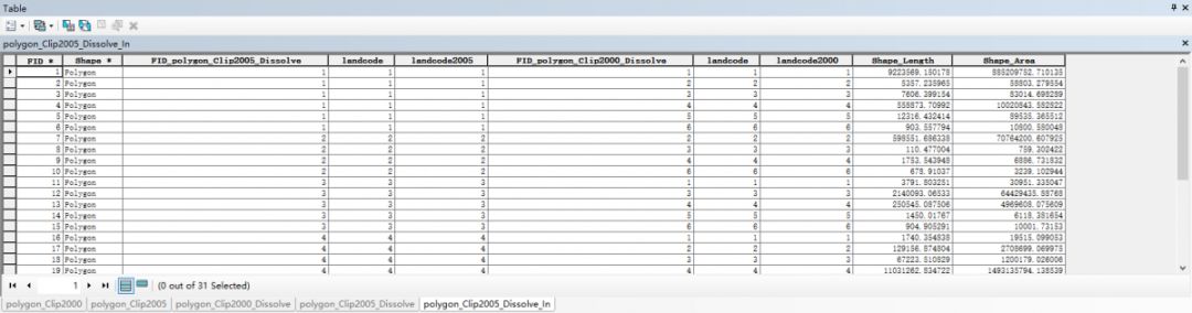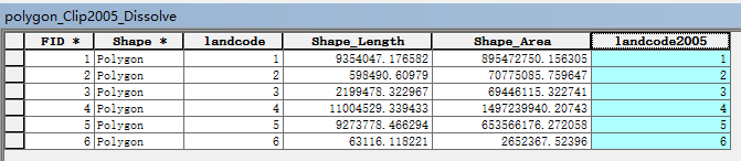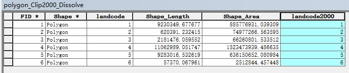 2、将dissolve后的两个图层新增一个字段,2000年这一期的增加landcode2000,2005年这一期的增加landcode2005,并将landcode的值赋过来