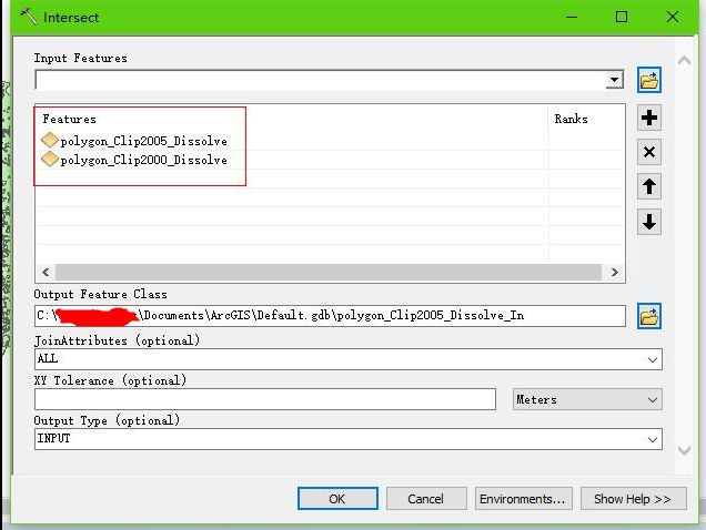 3、使用intersect工具,添加融合后的图层数据