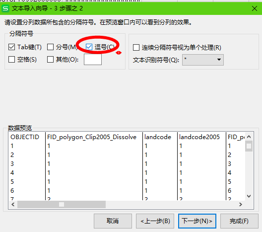 2、分隔符勾选逗号