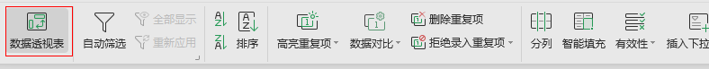 4、点击excel中数据选项卡下的透视表功能