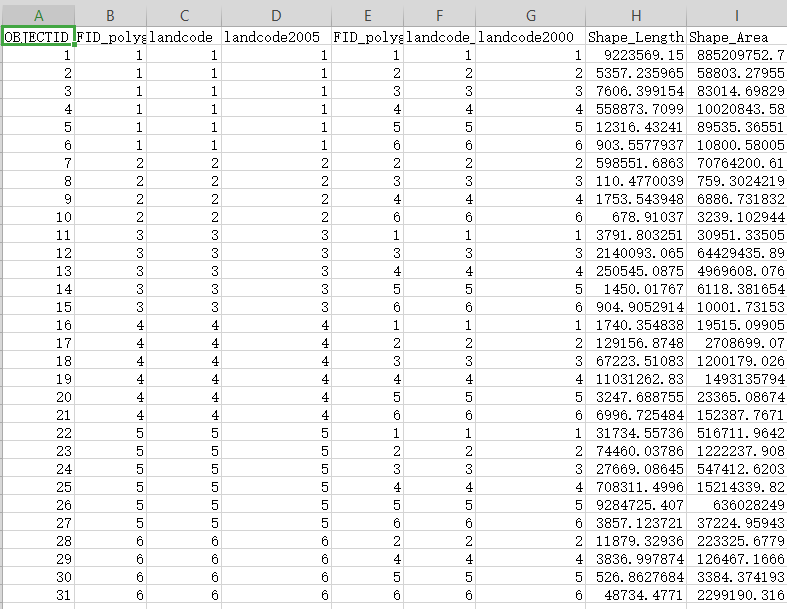 二、在ArcGIS中计算各类土地利用转移面积